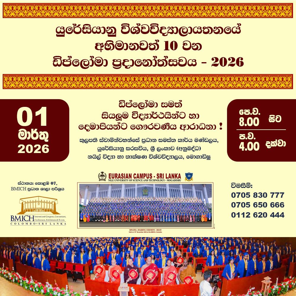 In addition, Eurasian Campus offers Psychology & Counselling Diploma and Buddhist Counselling & Management Diploma at a highly subsidised cost of just LKR 4,000. There is no course fee, only a minimal registration fee, and students receive a comprehensive one-year SLQF Level 3 Diploma for this investment.