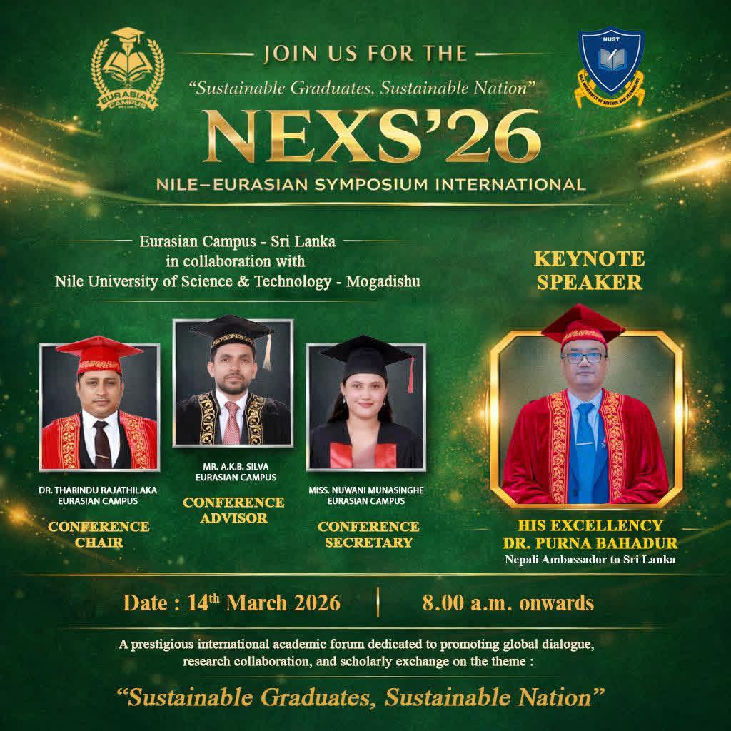 Nile – Eurasian International Journal of Humanities (NEIJH) is a jointly published academic journal by the Research Unit of Eurasian Campus – Sri Lanka and Nile University of Science and Technology.