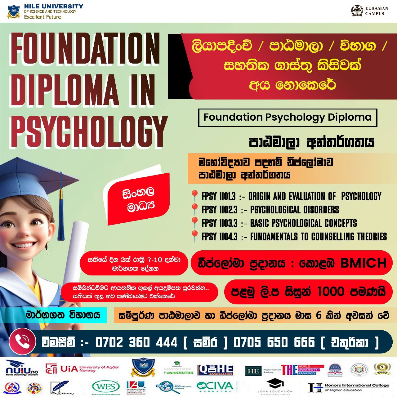 Higher National Diploma psychology and counselling. DAE - University of Colombo